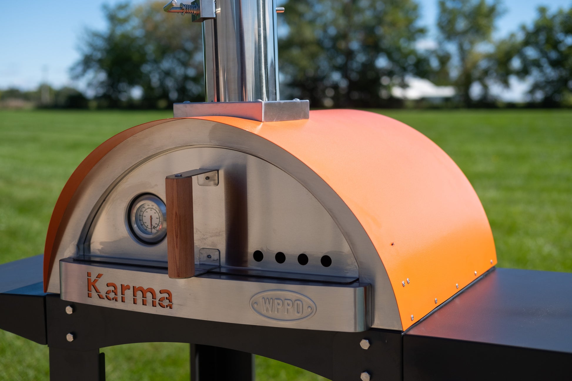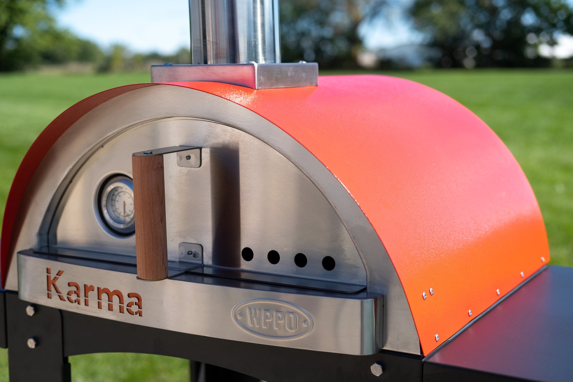 The Colored Karma 25 Wood Fired Oven with Stand brings modern design and authentic wood fired performance together in one sleek package. Its slim profile and vibrant finish options make it a standout centerpiece in any outdoor setting, while its compact footprint allows for flexible placement. Built for speed and consistency, the Karma 25 reaches optimal cooking temperatures quickly, giving you more time to focus on the food and the people you're sharing it with. The included stand offers a sturdy, ready to use setup, combining mobility with a clean, professional look.